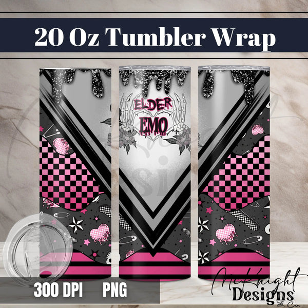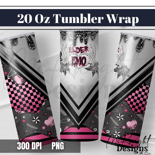 Elder Emo | Glitter Drip & Checker Print | 20 oz Tumbler Wrap | Digital Design Sublimation & Printed Vinyl