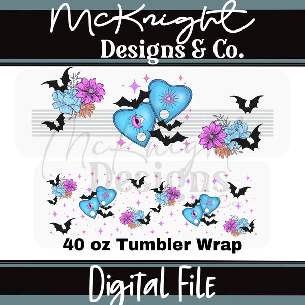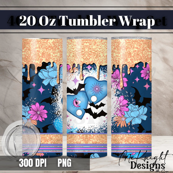 Spooky Planchettes | Bats & Florals | 20 oz Tumbler Wrap | Digital Design Sublimation & Printed Vinyl