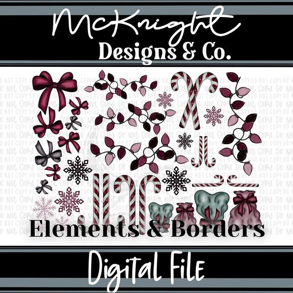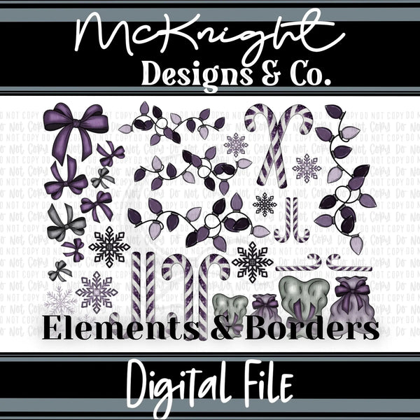 Winter Purple Set | Candy Cane Bows Lights Snowflakes | Element Sheets & Borders | Sublimation Printed Vinyl UV DTF