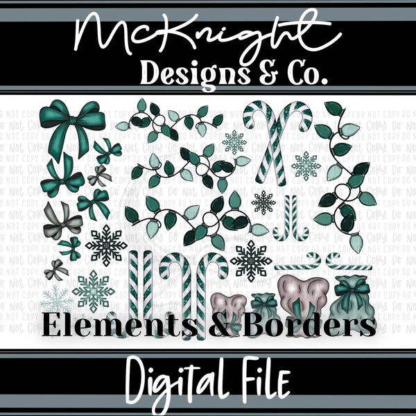 Wintery Christmas Teal Set | Candy Cane Bows Lights Snowflakes | Element Sheets & Borders | Sublimation Printed Vinyl UVDTF