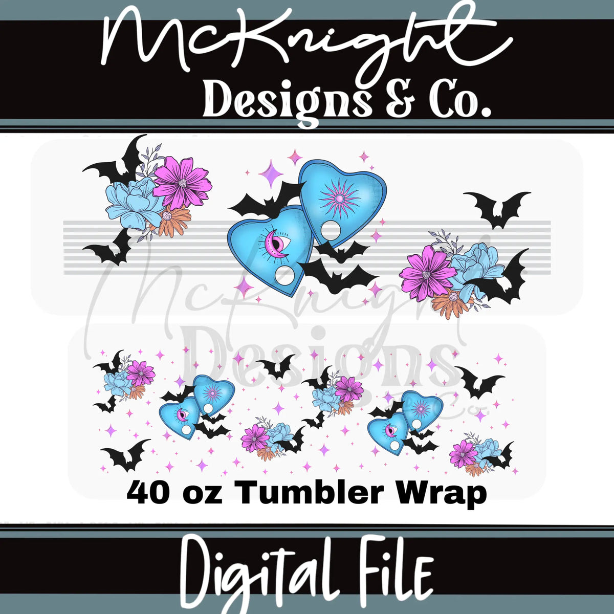 Spooky Planchettes | Bats & Florals | 40 oz Tumbler Wrap | Digital Design Sublimation UV DTF