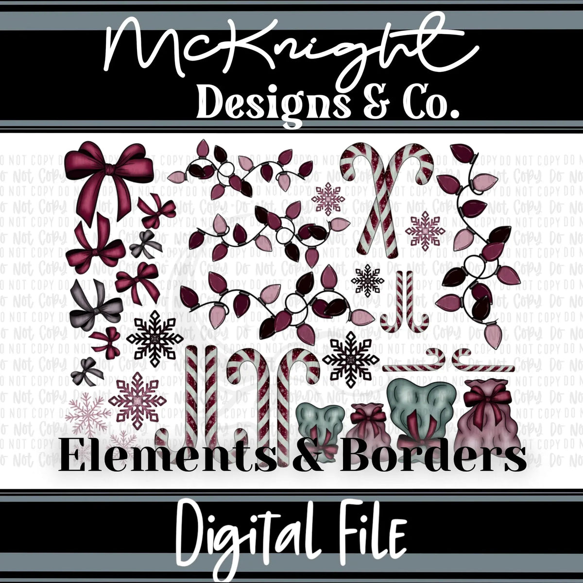 Winter Pink Set | Candy Cane Bows Lights Snowflakes | Element Sheets & Borders | Sublimation Printed Vinyl UV DTF