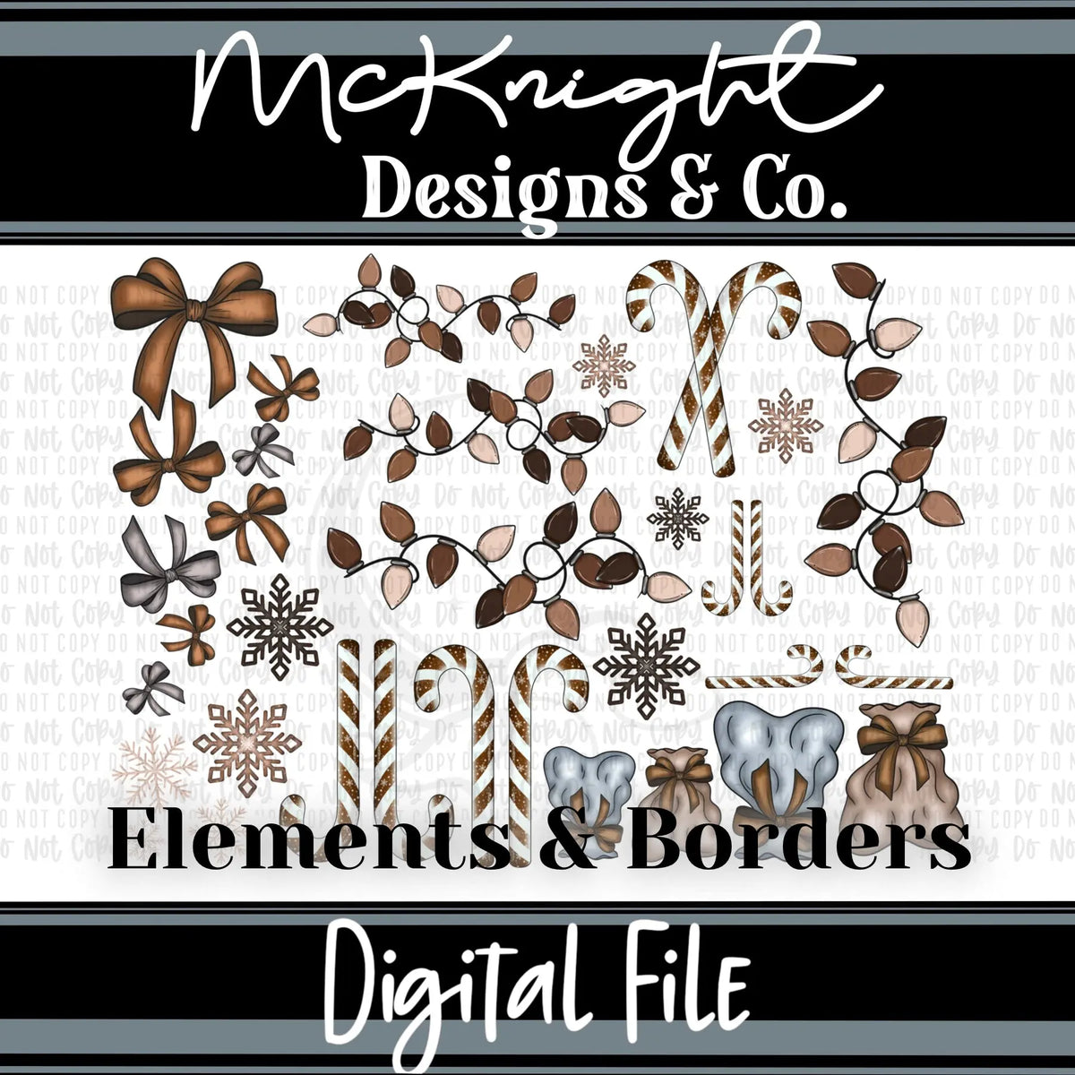 Winter Golden Neutral Set | Candy Cane Bows Lights Snowflakes | Element Sheets & Borders | Sublimation Printed Vinyl UV DTF