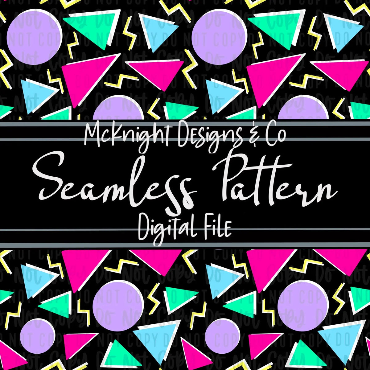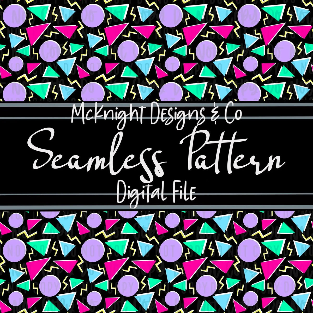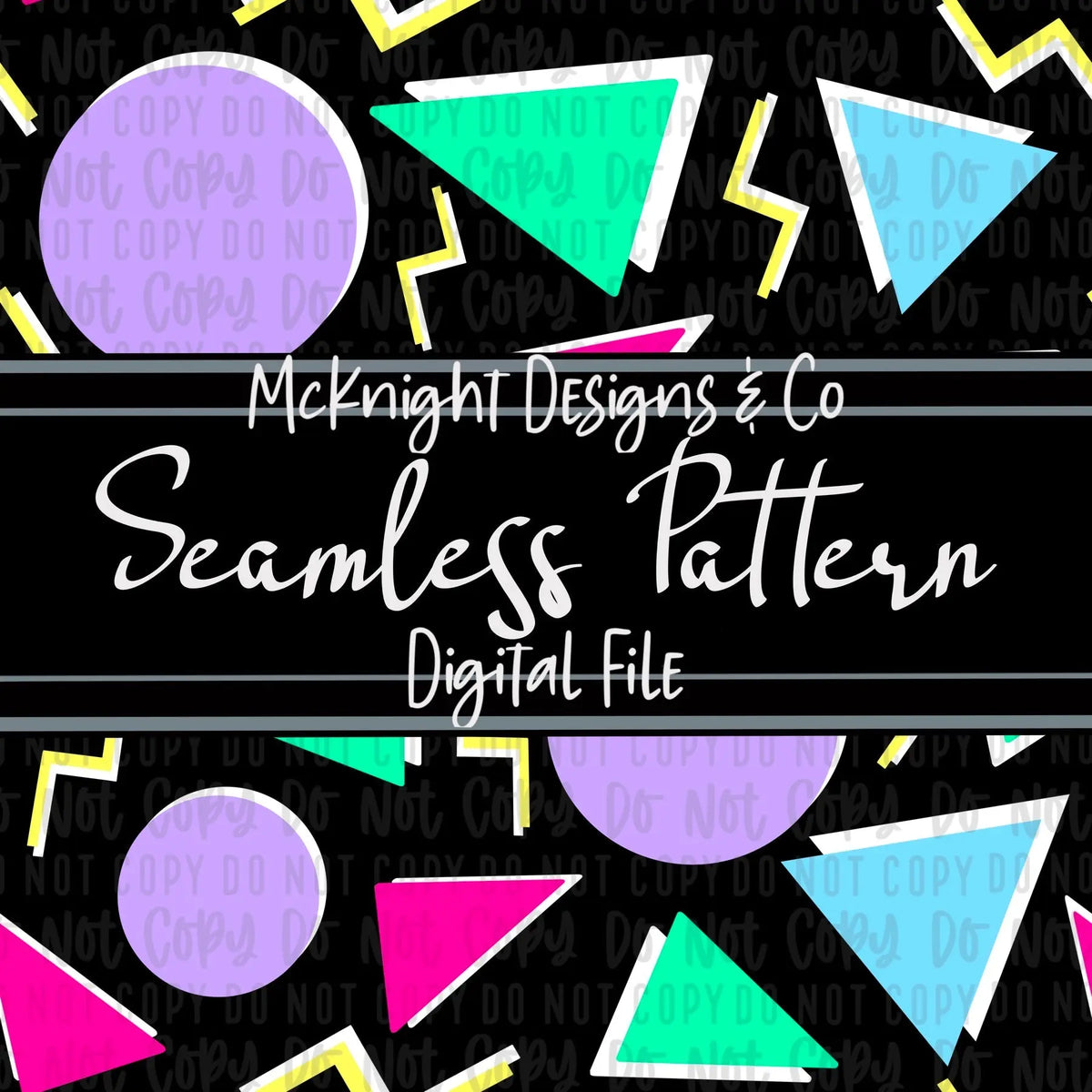 90s Retro Geometric Seamless Pattern – Memphis-Style Shapes for Sublimation, Fabric & More