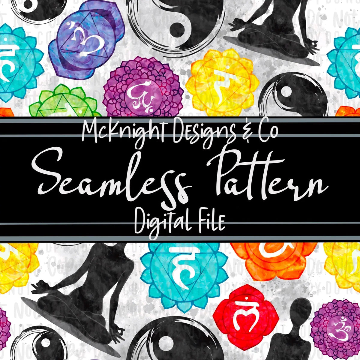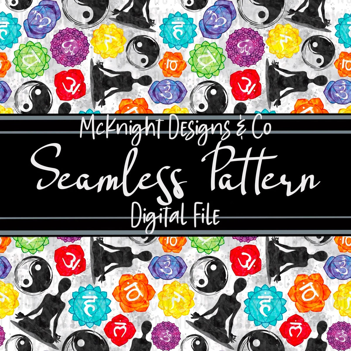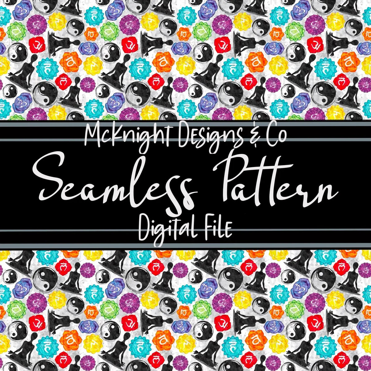 Find Your Balance Seamless Pattern – Hand-Drawn Zen, Chakra & Yoga Digital Design for Fabric, Vinyl & Sublimation