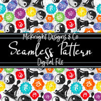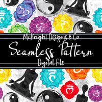Part of the Find Your Balance design set, this hand-drawn seamless pattern features chakra symbols, yin-yang elements, peaceful florals, and calming celestial accents in a soothing color palette. Perfect for coordinating with matching wraps, decals, and element sheets from the same collection, this pattern brings a serene and spiritual energy to your creative projects.