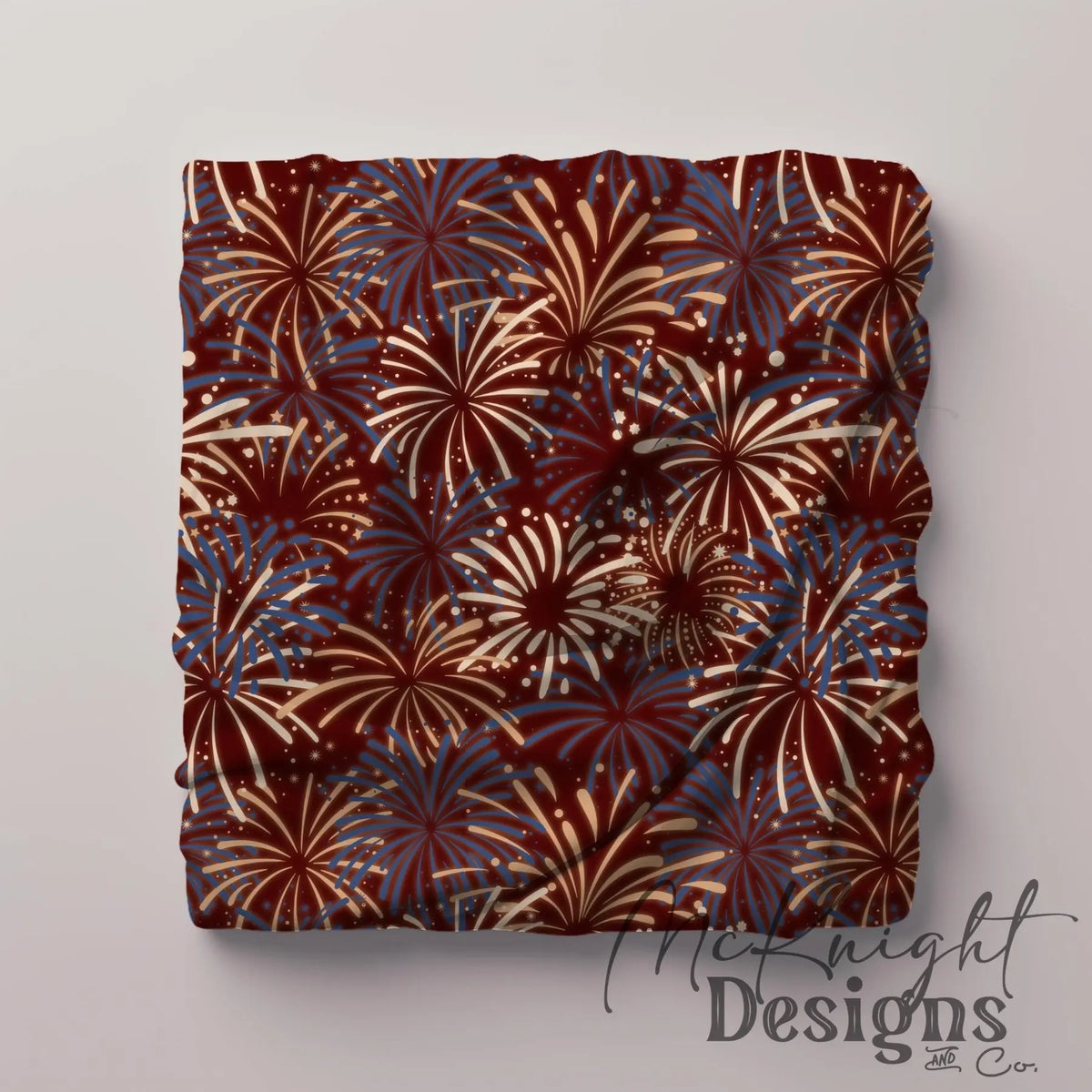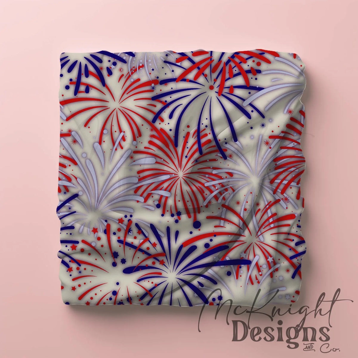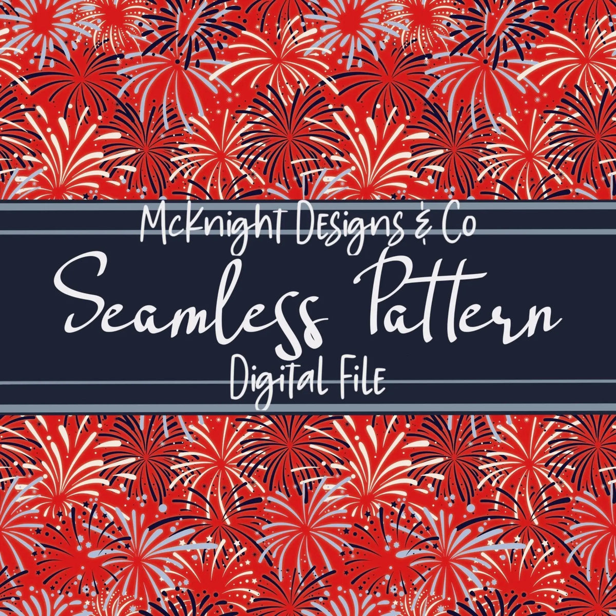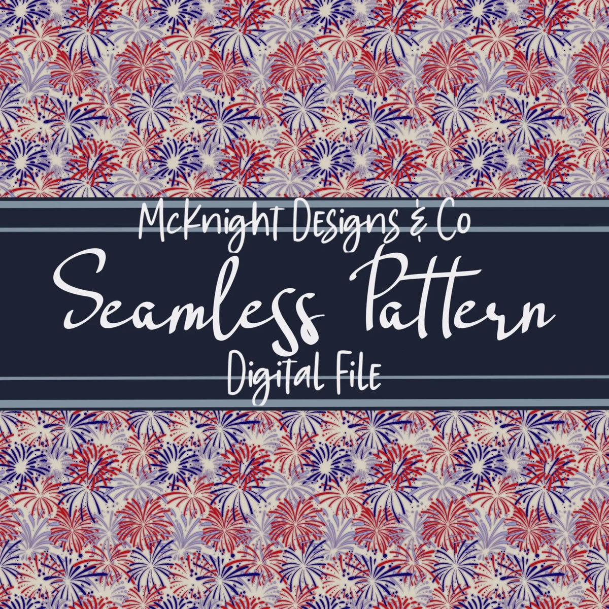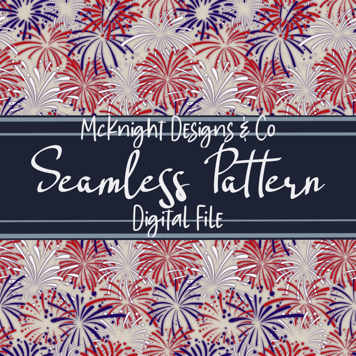 FIreworks 4th of July Seamless Pattern – Patriotic Digital Design Print for Sublimation, Fabric & Vinyl