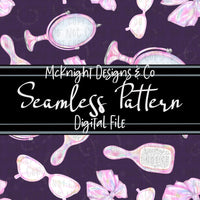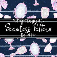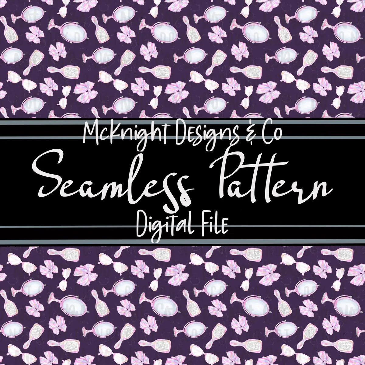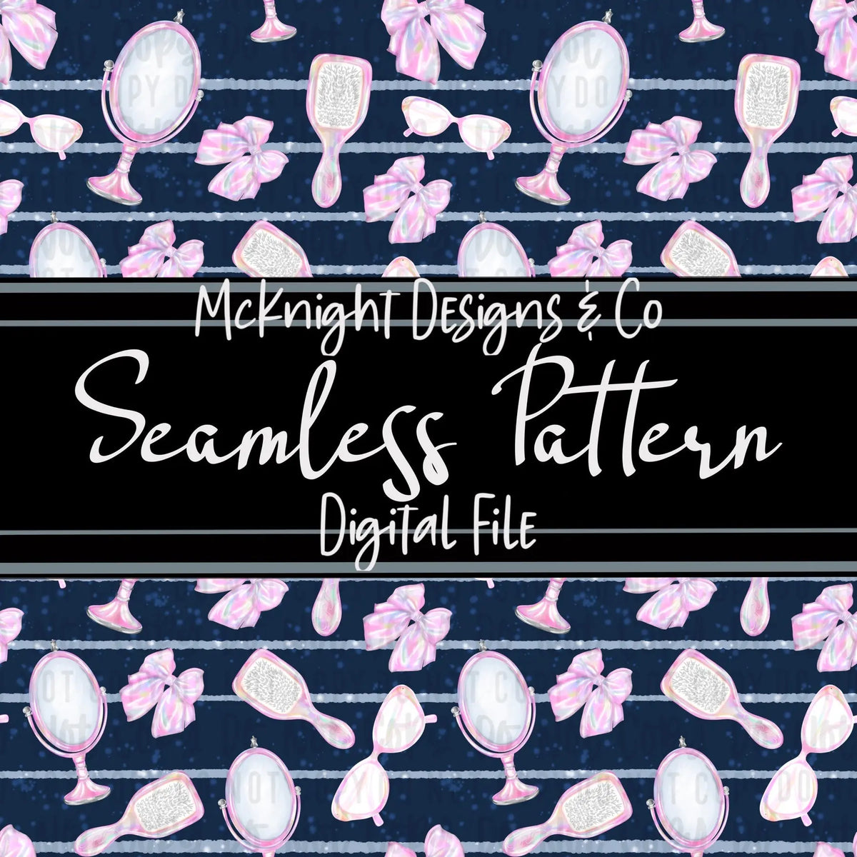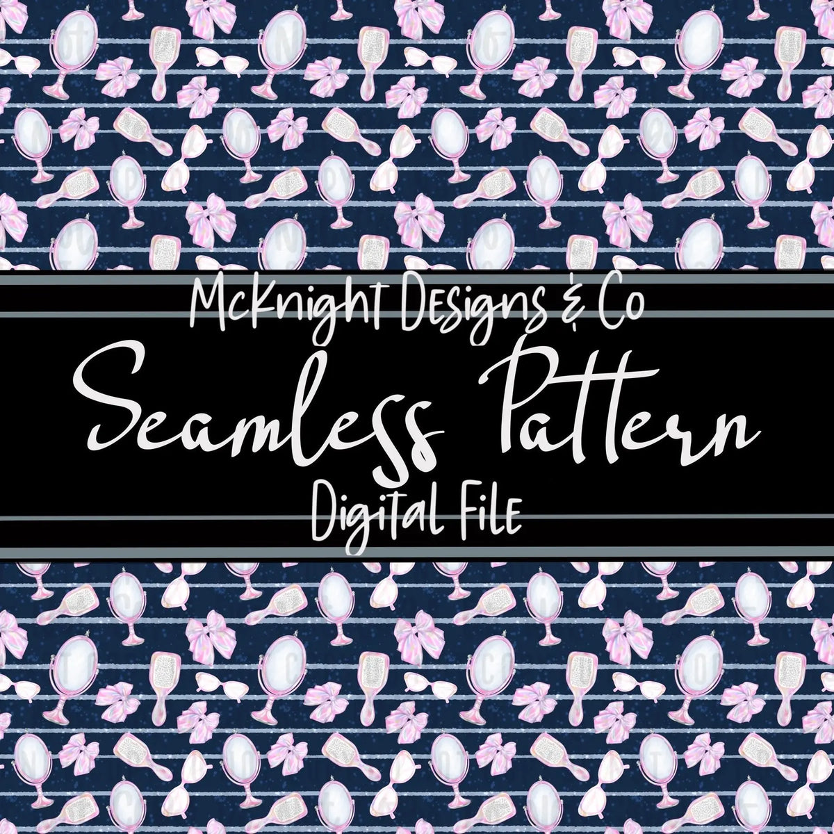 Iridescent Girly Seamless Pattern – Hand-Drawn Mirrors, Brushes & Bows - Digital Design for Fabric, Vinyl & Sublimation