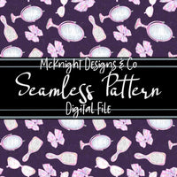 Add a playful, feminine aesthetic to your projects with this hand-drawn seamless pattern, featuring iridescent-colored mirrors, makeup brushes, and bows. This high-resolution seamless design is perfect for fabric printing, sublimation, digital papers, scrapbook paper, printed vinyl, and custom surface applications like phone cases, leather goods, and notebooks.