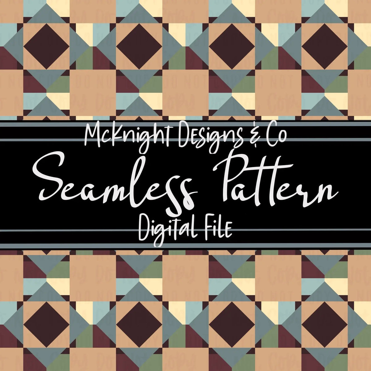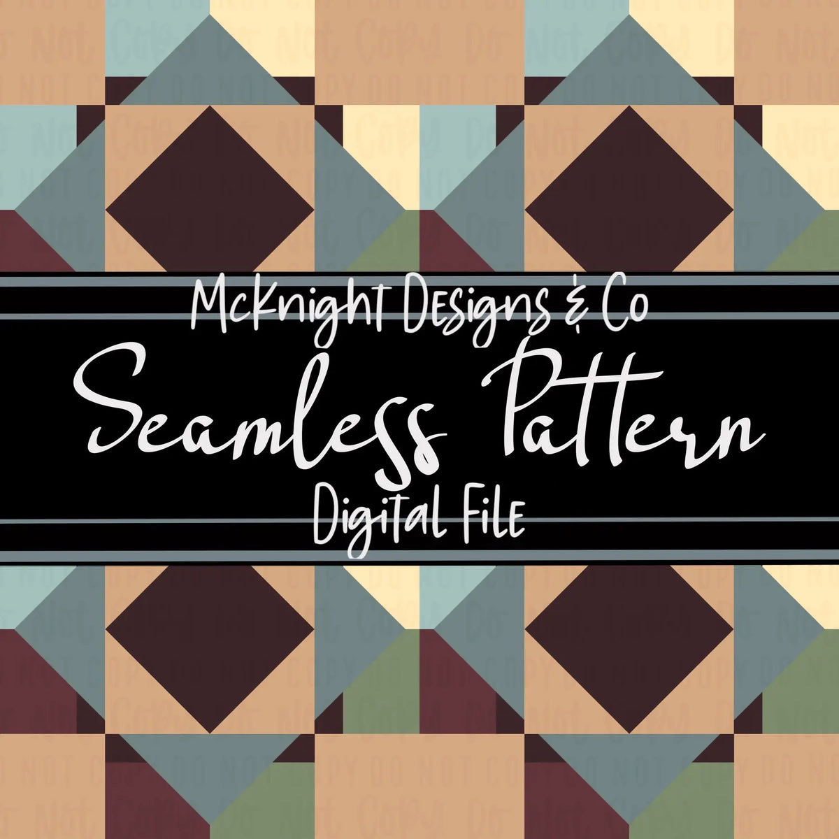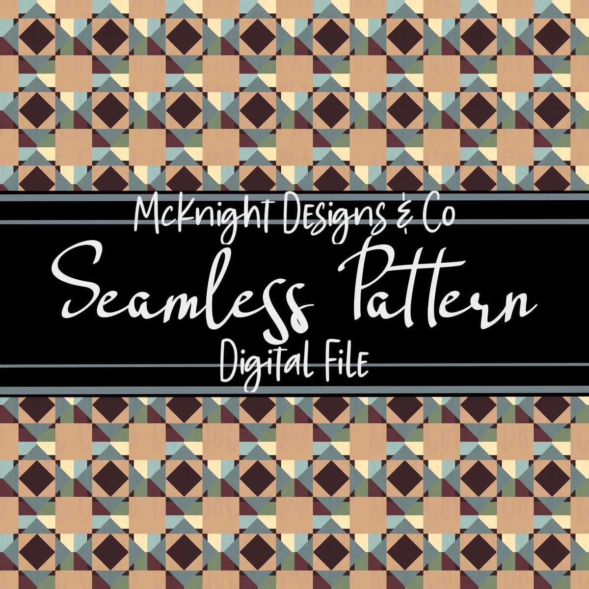 Mock Quilt Block Diamond Seamless Pattern – Hand-Drawn Digital Design for Fabric, Vinyl & Sublimation