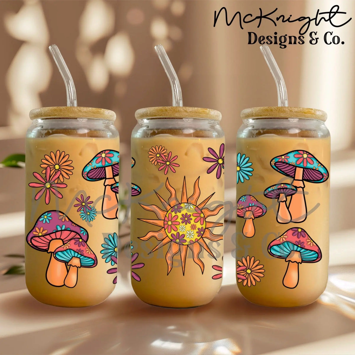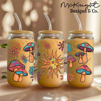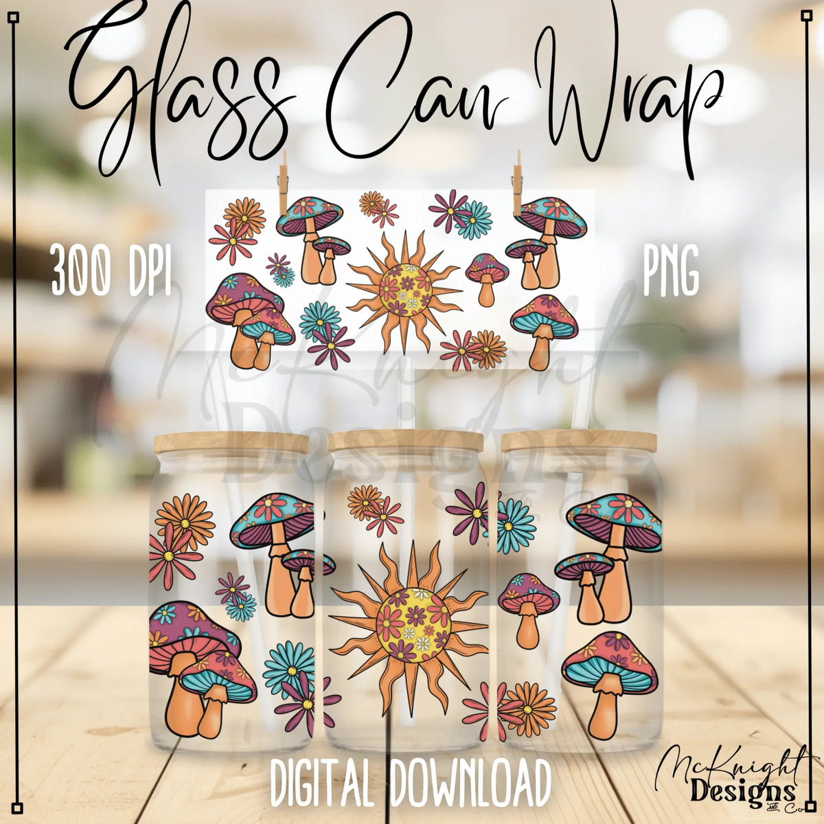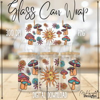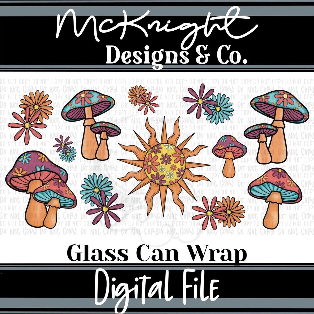 Floral | Sun | Mushrooms | Psychedelic Retro | 16 oz Can Wrap Digital Design | PNG UVDTF & Sublimation