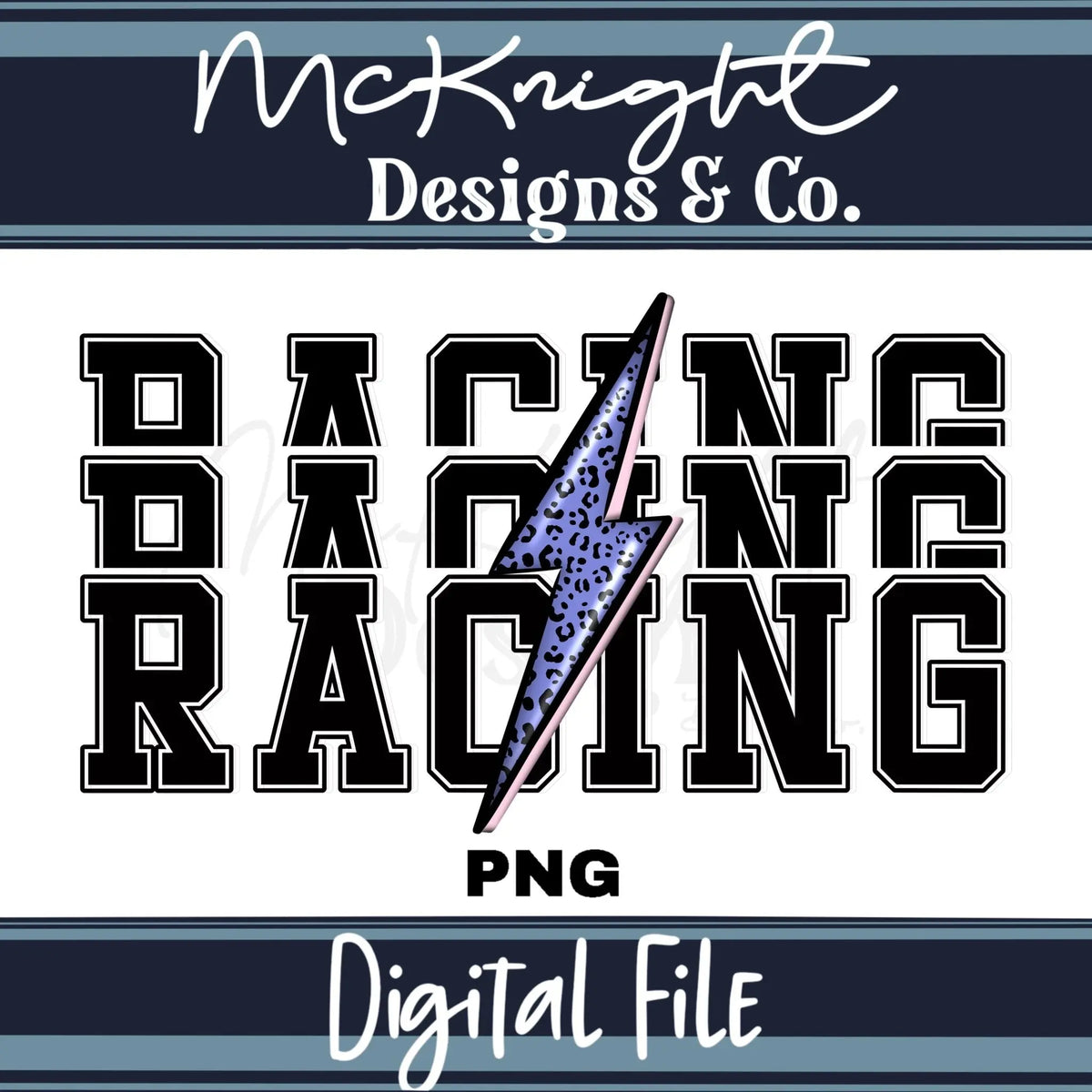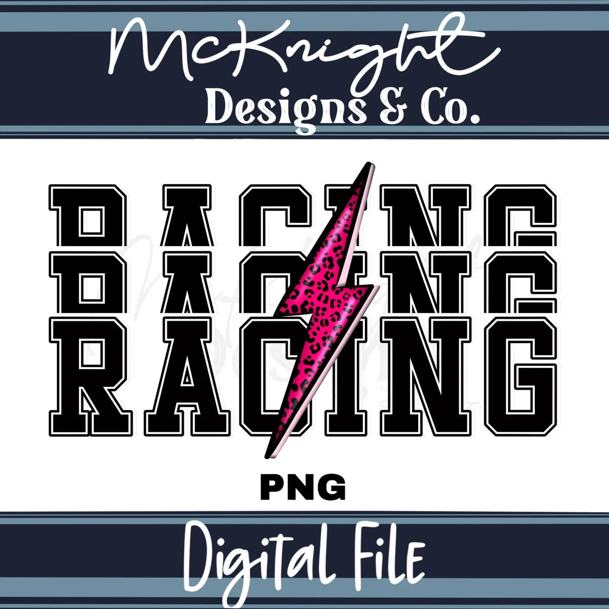 Turn heads at the track with this bold Racing PNG design, featuring stacked “racing” text and a leopard print lightning bolt in 3 eye-catching colors: pink, golden yellow, and blue. Designed for race fans, dirt track life, or car show merch, this modern digital design adds instant energy to your favorite projects.