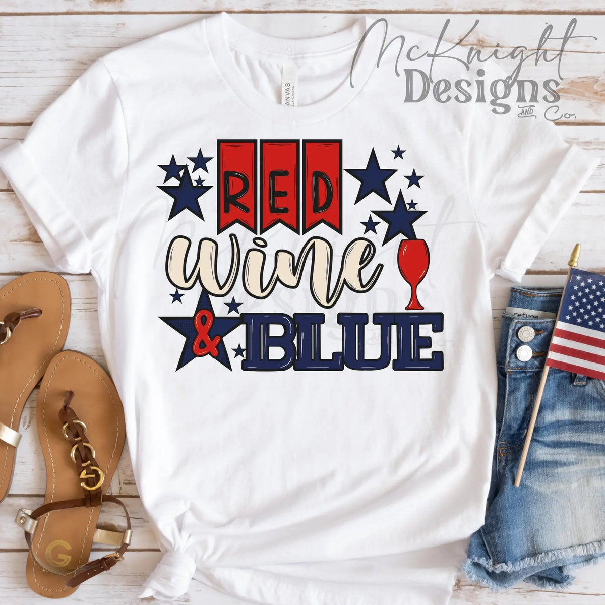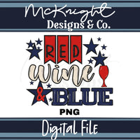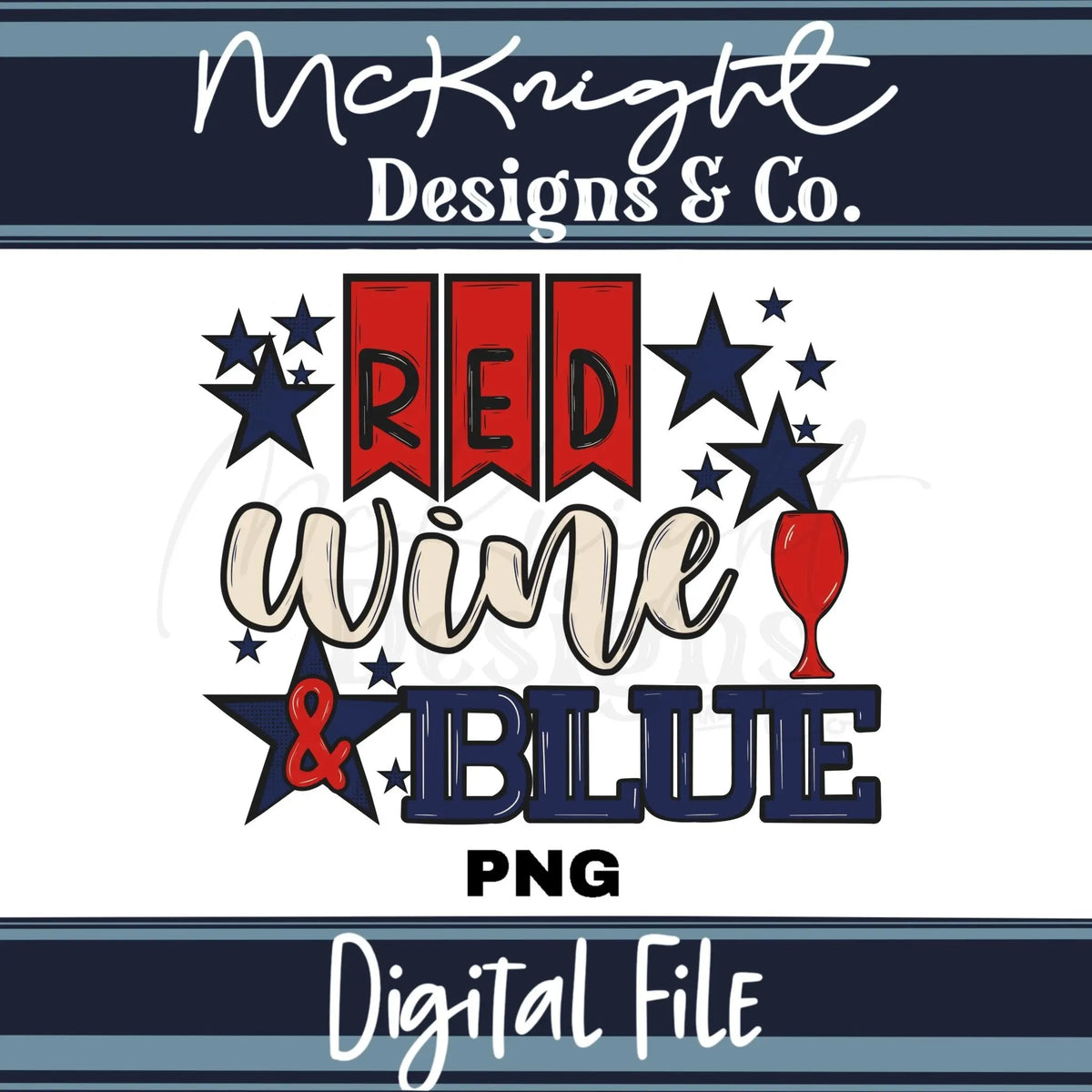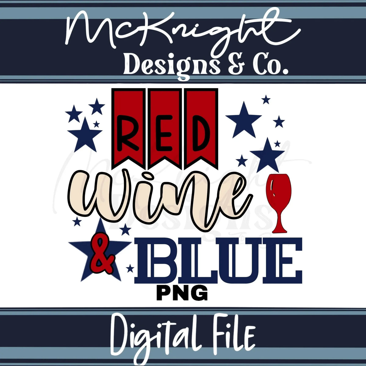 Red Wine and Blue PNG – Patriotic 4th of July Digital Design for Sublimation, DTF, UVDTF