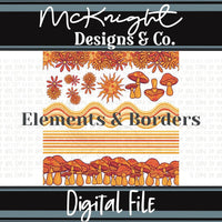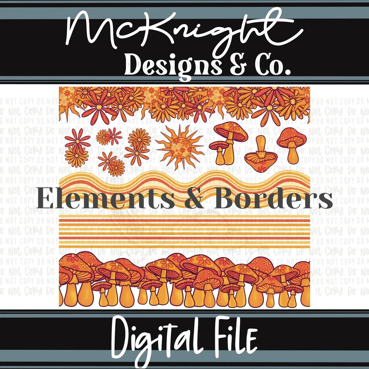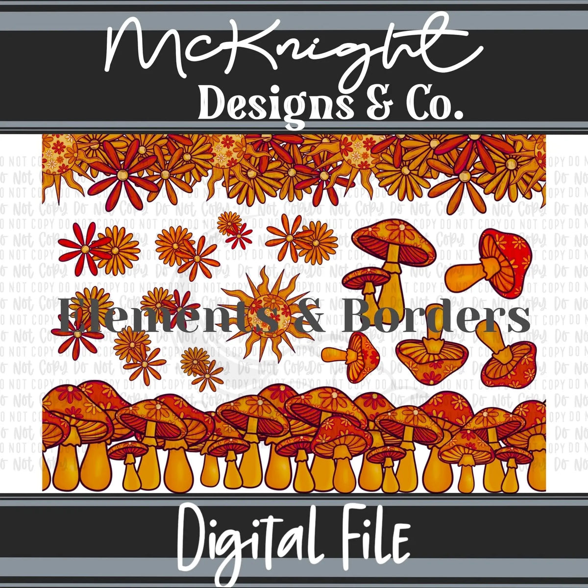 Stay Trippy, Little Hippie v4 | Mushrooms Sun Florals & Stripes | Element Sheets & Borders | Sublimation Printed Vinyl UV DTF