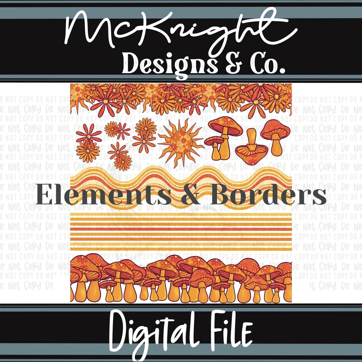 Get groovy with this Stay Trippy Little Hippie Borders & Elements Sheet, a hand-drawn collection of retro boho-style elements inspired by the psychedelic aesthetic. This version features a warm-toned color scheme (orange, red, and yellow) and does NOT include any text, making it ideal for fully customized designs. The sheet includes mushrooms, celestial accents, floral borders, and trippy 70s-inspired elements that perfectly complement the Stay Trippy Little Hippie collection.