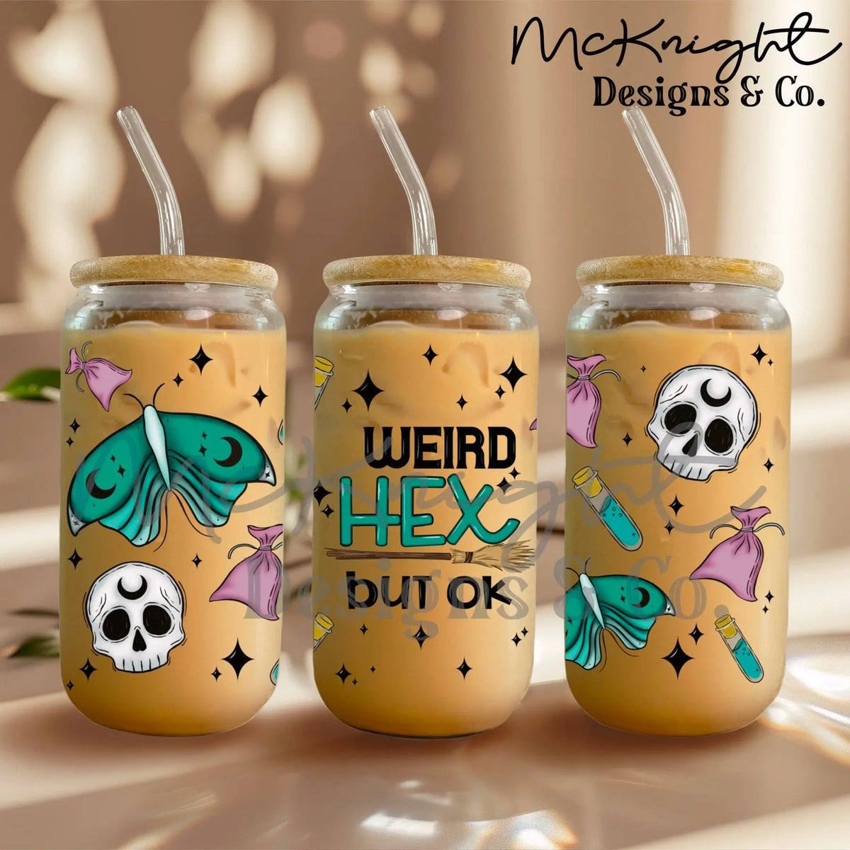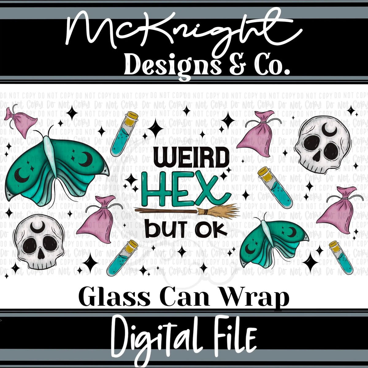 Cast a spell of sarcasm with this "Weird Hex But Ok" digital wrap! Inspired by the popular "Weird Flex But Ok" phrase, this witchy and snarky design features moths, skulls, potion bottles, spell sachets, and celestial stars to bring an enchanting, gothic twist to your drinkware. Designed to perfectly fit 16 oz glass cans or stainless steel tumblers, this PNG wrap is perfect for witchy boutiques, Halloween lovers, DIY sublimation projects, UVDTF crafts, and anyone who loves a little magical mischief with their coffee or cocktails!
